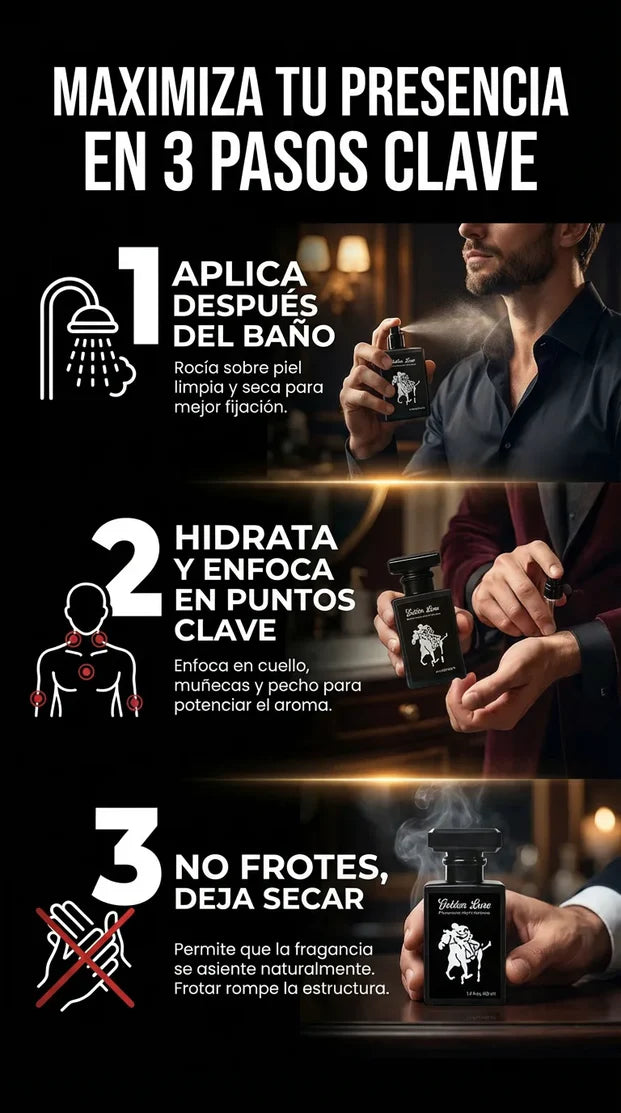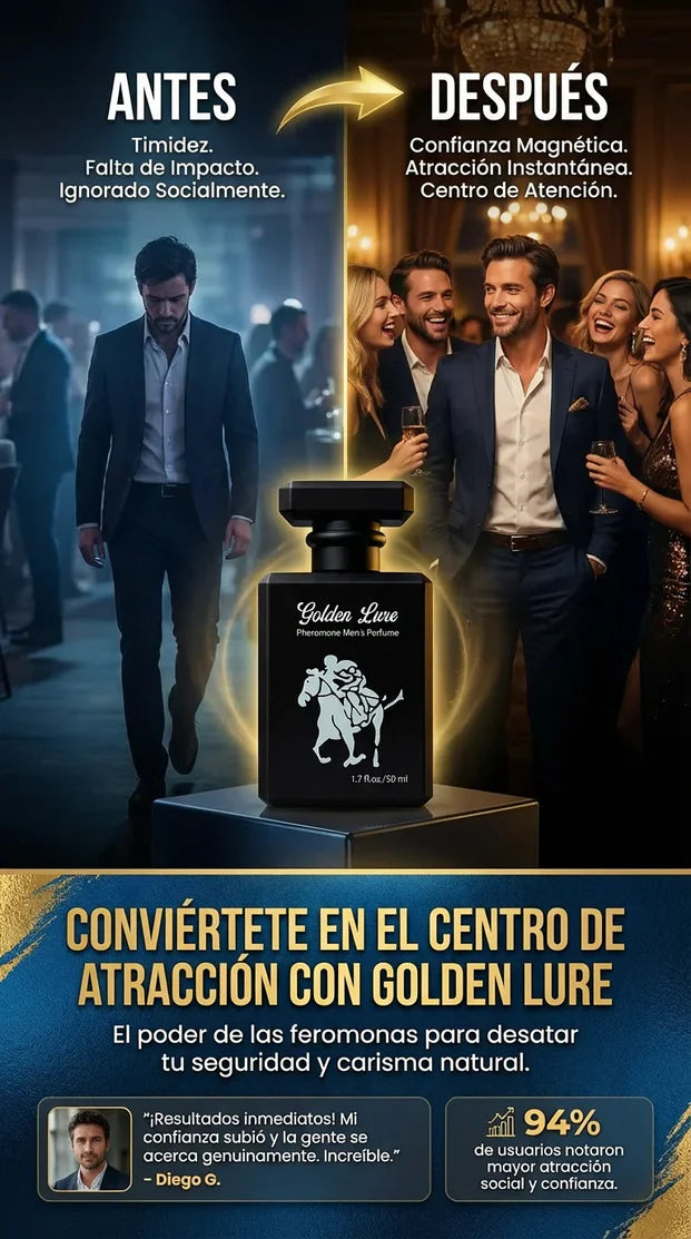 Desde que uso GOLDEN LURE me siento mas seguro al salir. El aroma es elegante y dura bastante. No es un perfume comun, la gente lo nota y siempre me preguntan cual es.